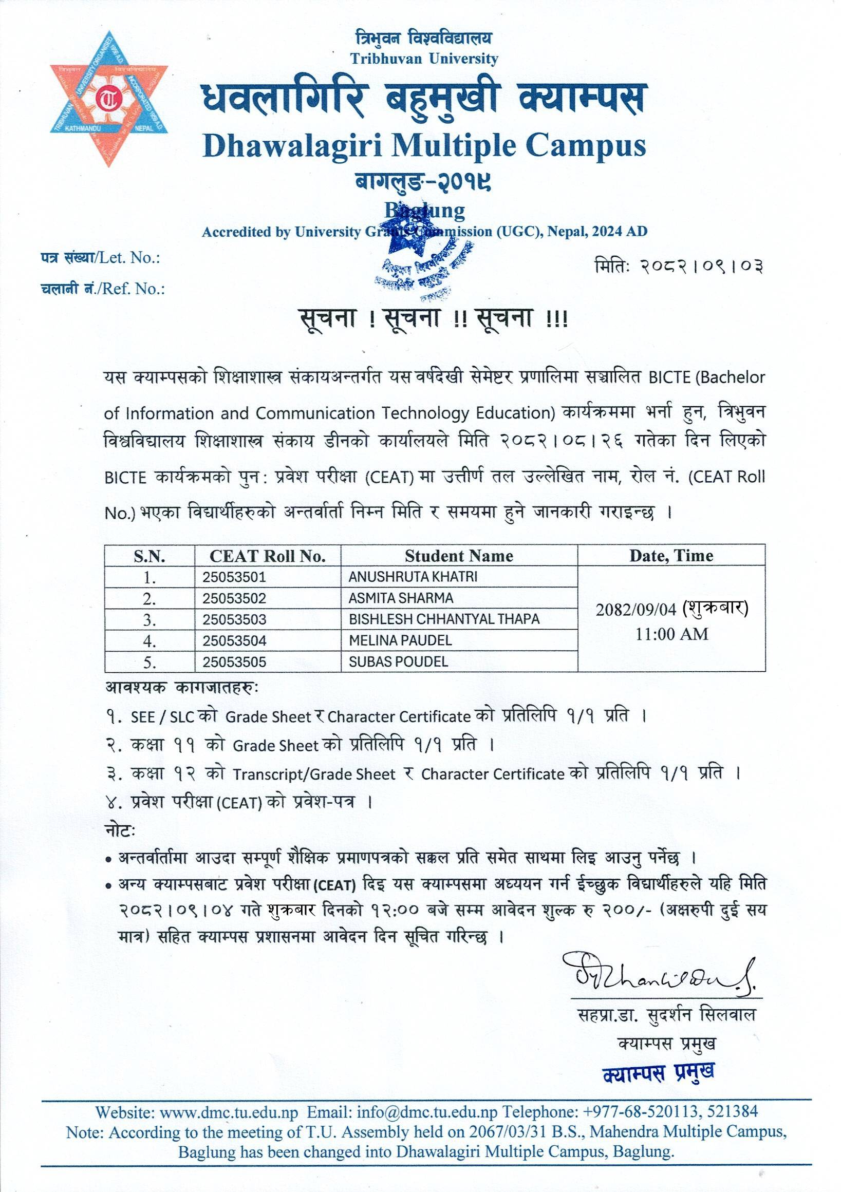 BICTE पुनः प्रवेश परीक्षा उत्तीर्ण विद्यार्थीहरुको अन्तर्वार्ता सम्बन्धी सूचना ।