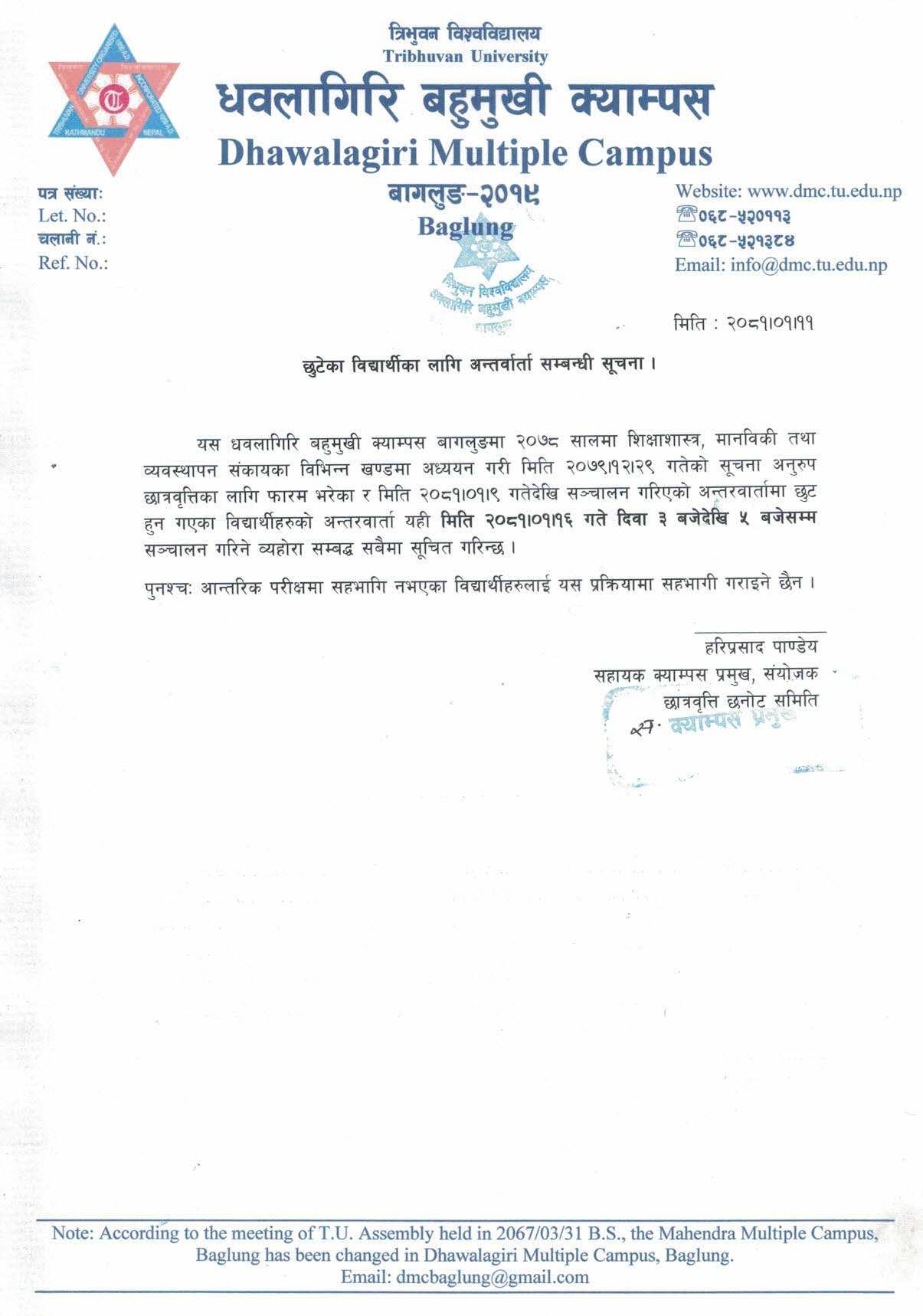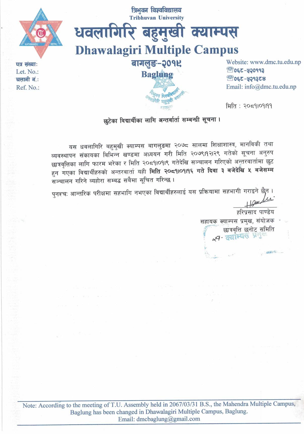 छुटविद्यार्थीहरुकाेछुटविद्यार्थीहरुकाे अन्तरवार्ता सम्बन्धी सूचना ।
