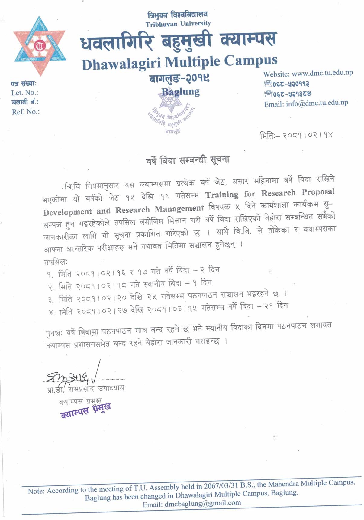 हिउँदे बिदा २०८२ सम्बन्धी सूचना ।।।