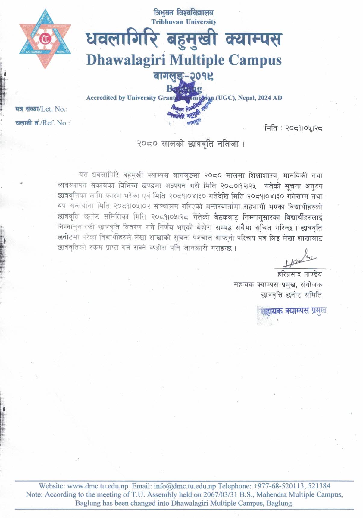 २०८० काे छात्रवृति नतिजा प्रकाशन ।