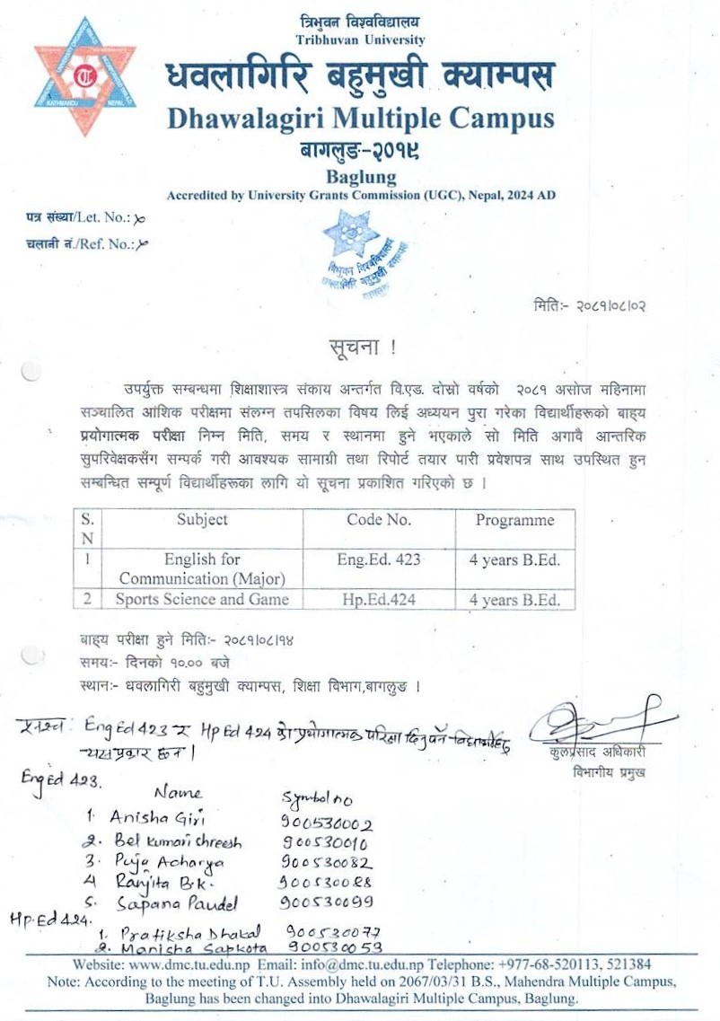 शिक्षाशास्त्र संकाय अन्तर्गत वि.एड. दोस्रो वर्षको २०८१ असोज महिनामा सञ्चालित आंशिक परिक्षार्थीको बाह्य प्रयोगात्मक परीक्षा सम्बन्धी सूचना ।।।