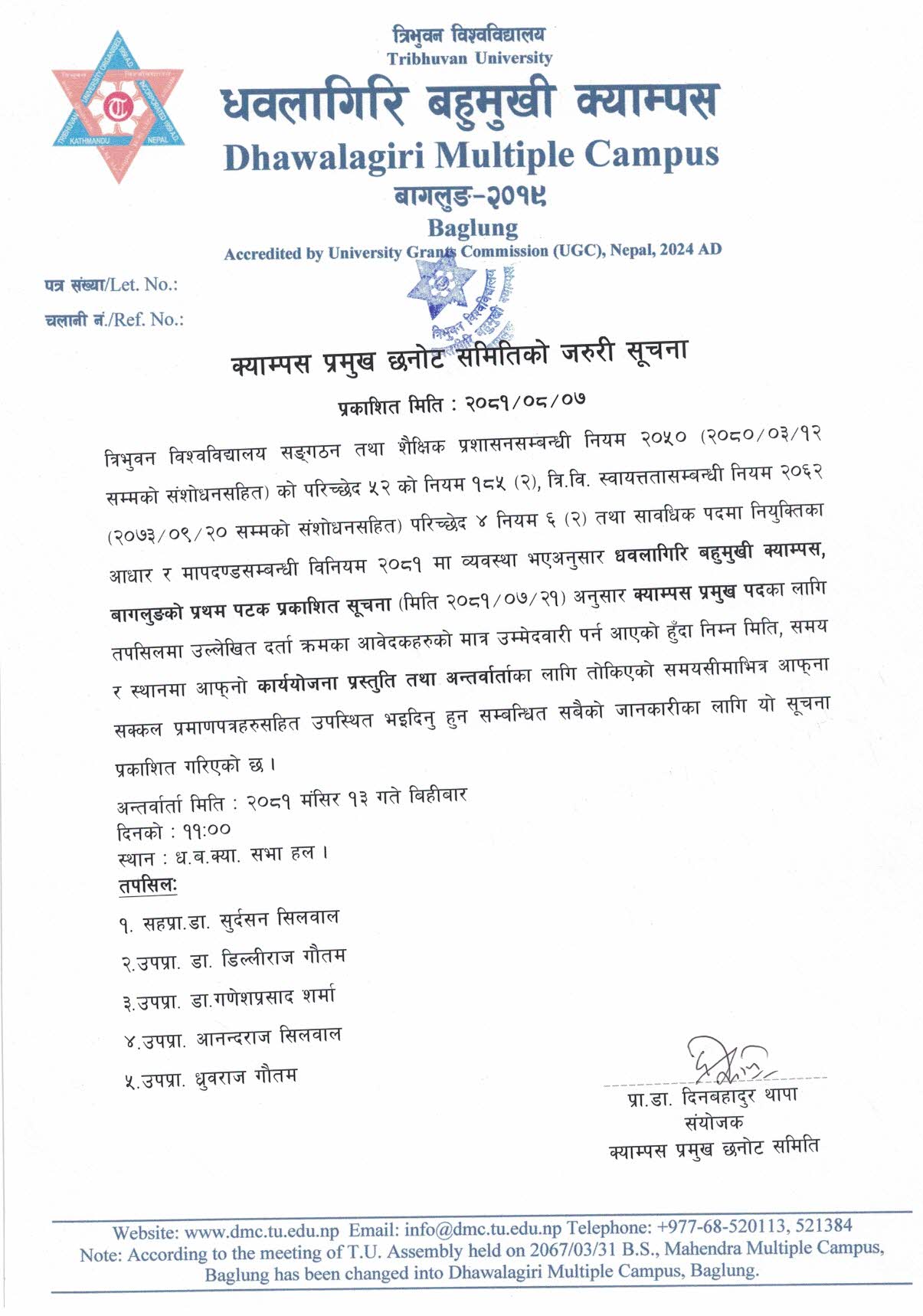 क्याम्पस प्रमुख छनोट समितकाे जरुरी सूचना ।