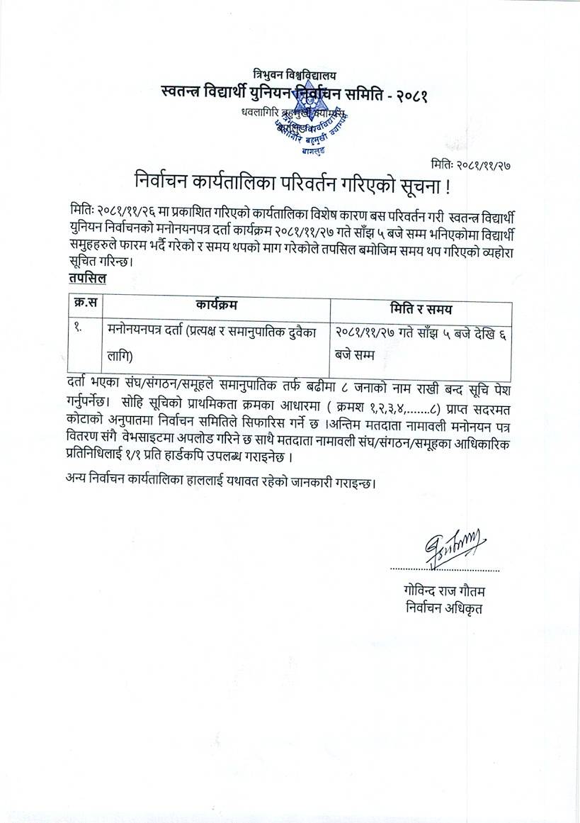 निर्वाचन कार्यतालिका परिवर्तन गरिएको सूचना !